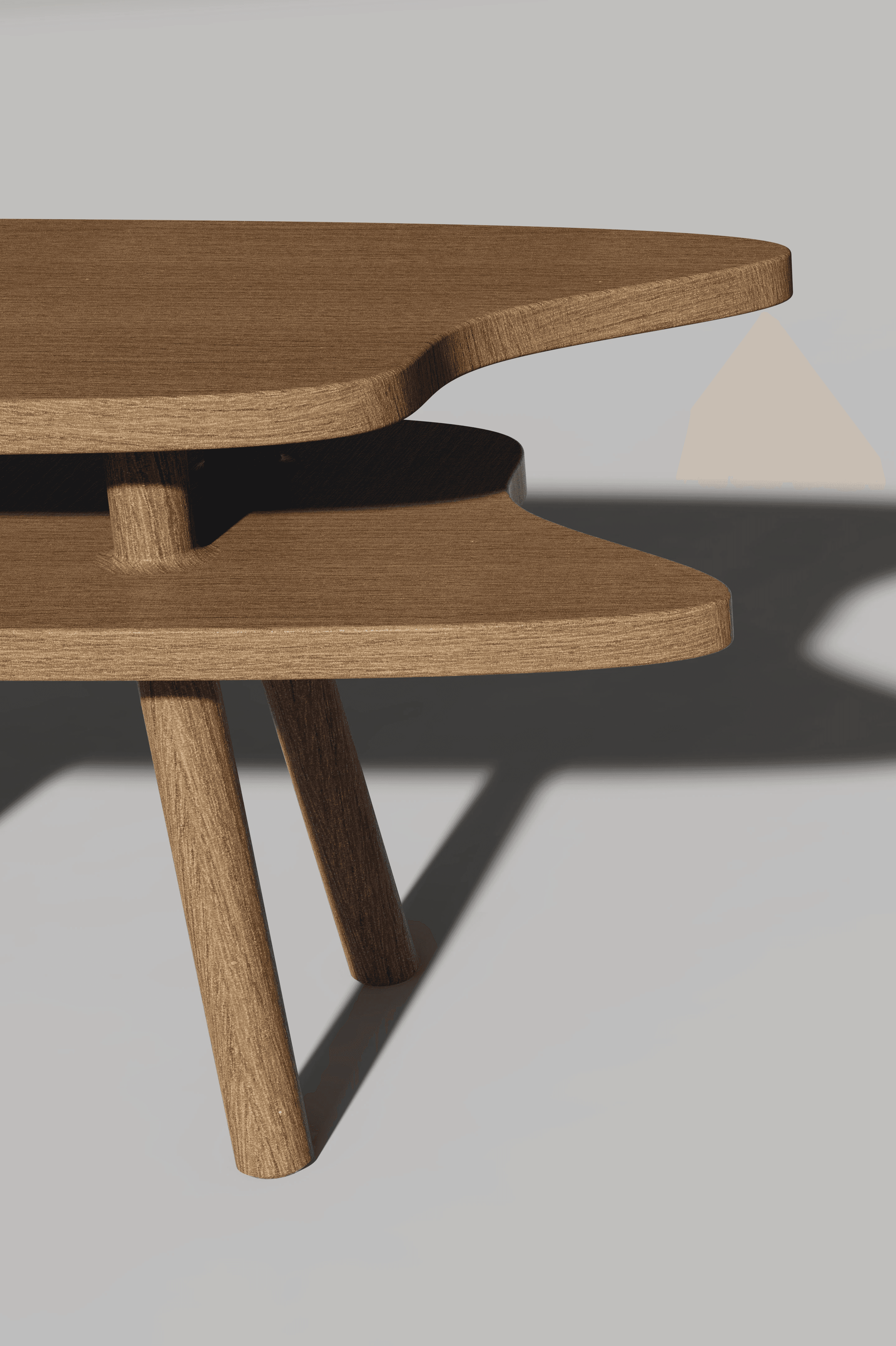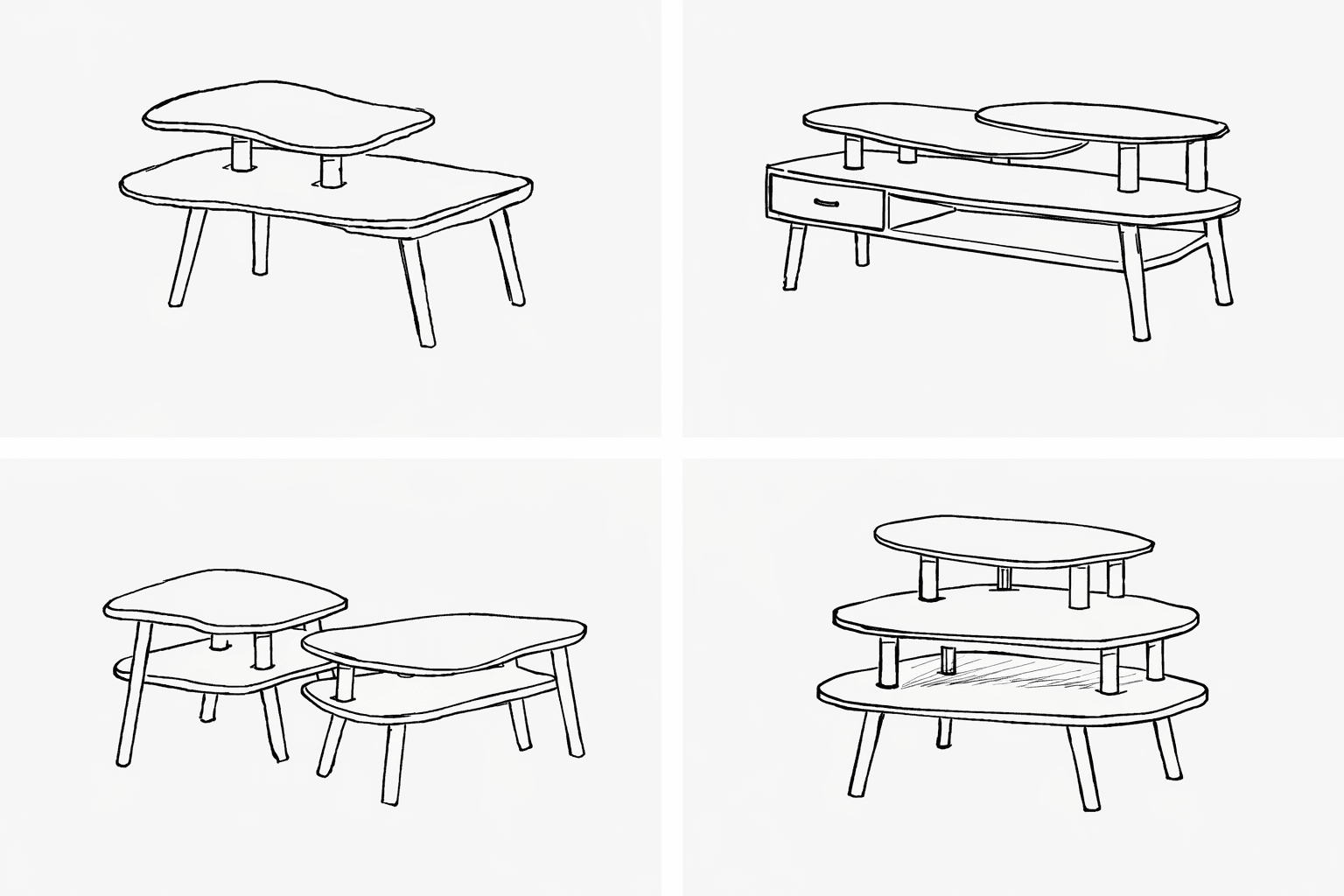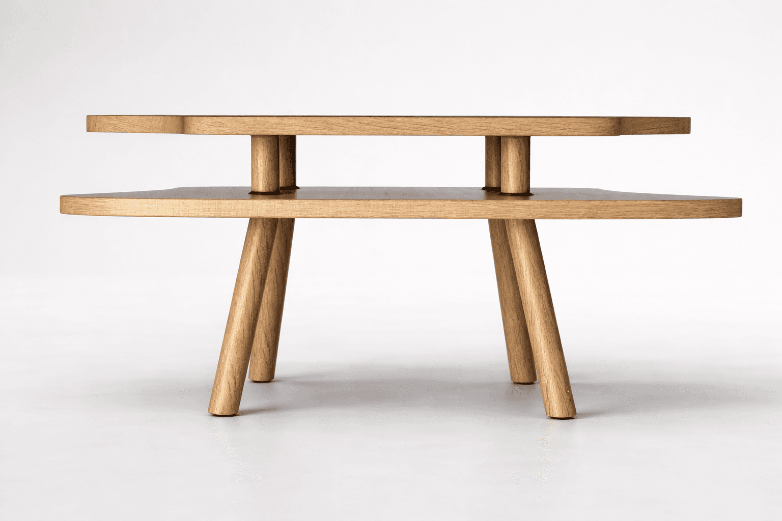 The primary challenge was to design a structurally stable coffee table that prioritizes long-term durability and repairability within a Scandinavian design language. The offset two-plane configuration required careful load distribution while maintaining material efficiency and visual lightness. Material selection and joinery were considered with longevity in mind, accounting for dimensional movement in solid wood and enabling potential disassembly or repair without compromising structural integrity.